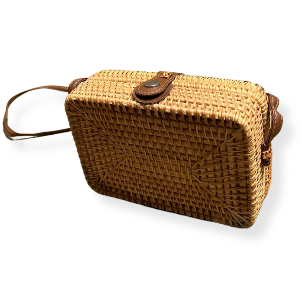 O fechamento em botão adiciona praticidade e segurança aos seus pertences, enquanto o design arrojado e chamativo da Bolsa Rattan Bali é uma declaração de estilo por si só.