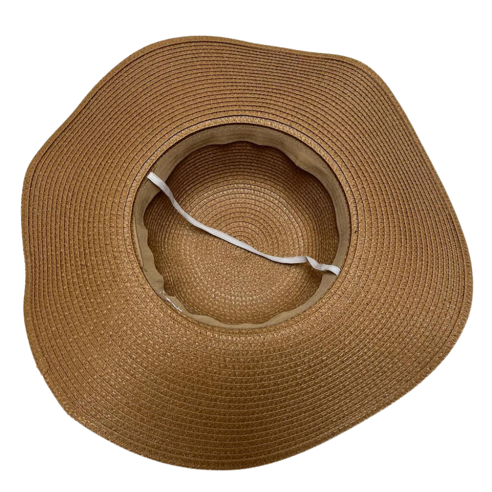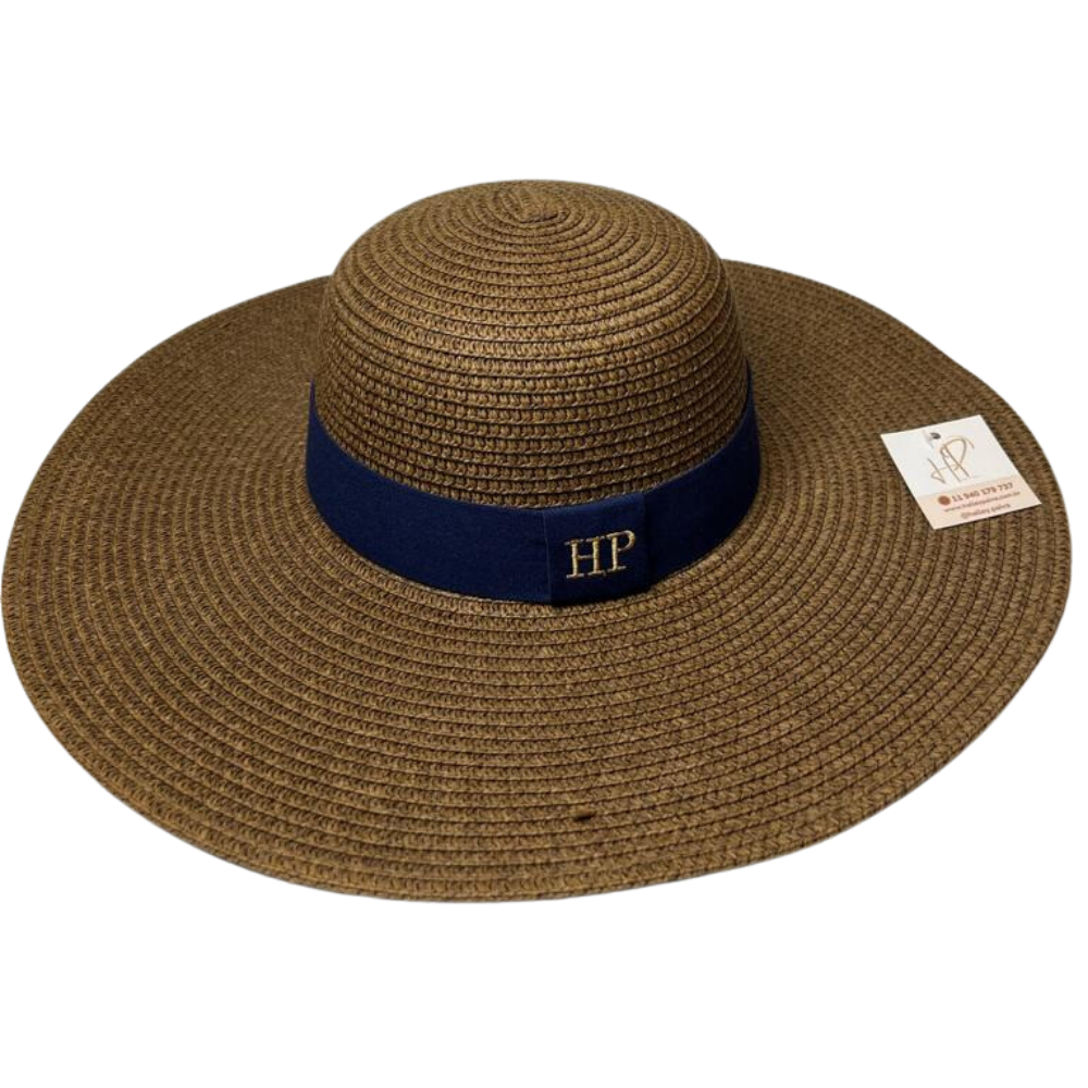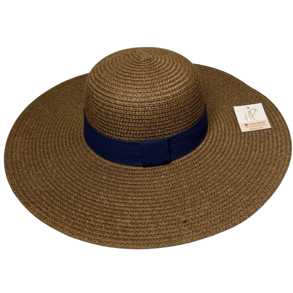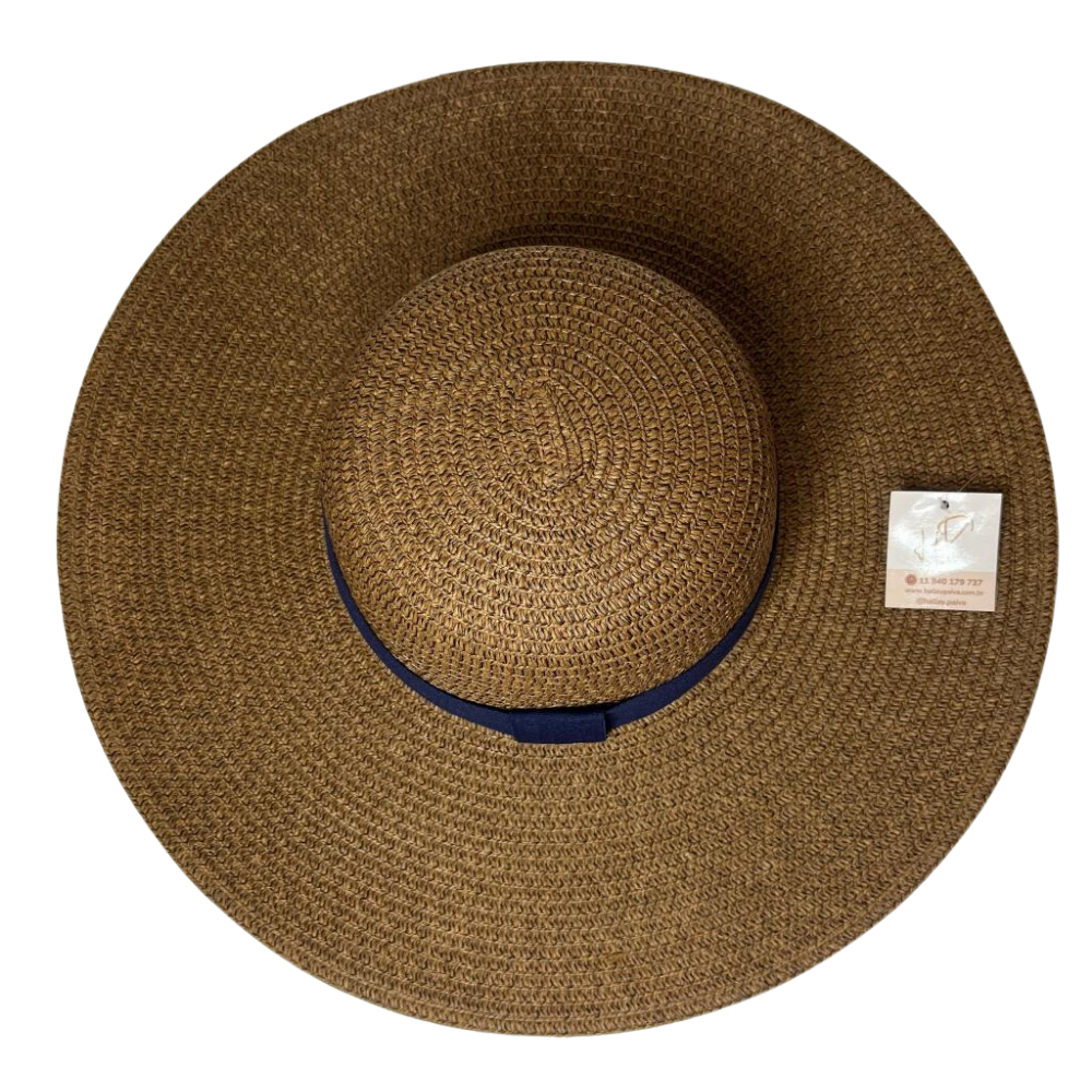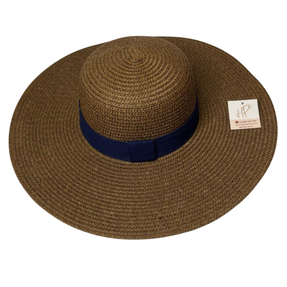 CHAPÉU ABA LONGA PALHA SINTÉTICA MALEÁVEL CAFÉ FAIXA PERSONALIZADA