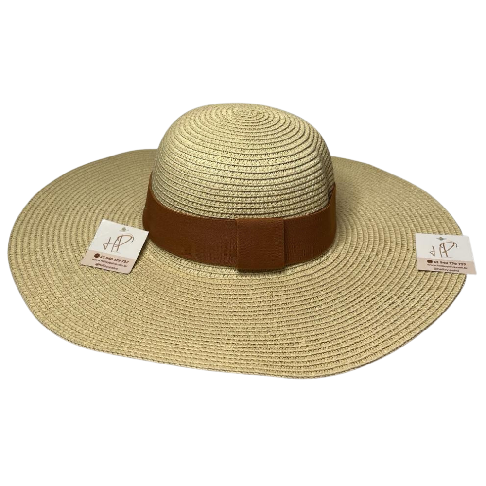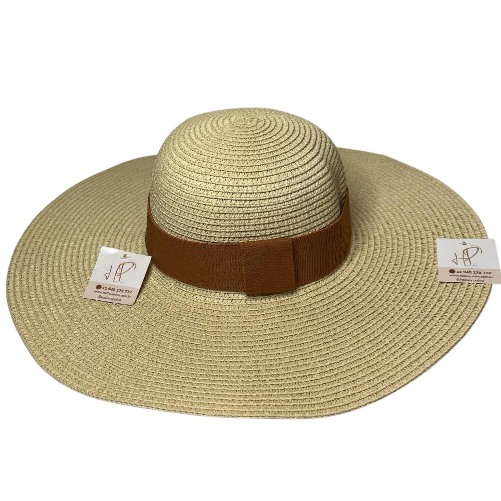 CHAPÉU ABA LONGA PALHA SINTÉTICA MALEÁVEL NATURAL COM FAIXA PERSONALIZADA